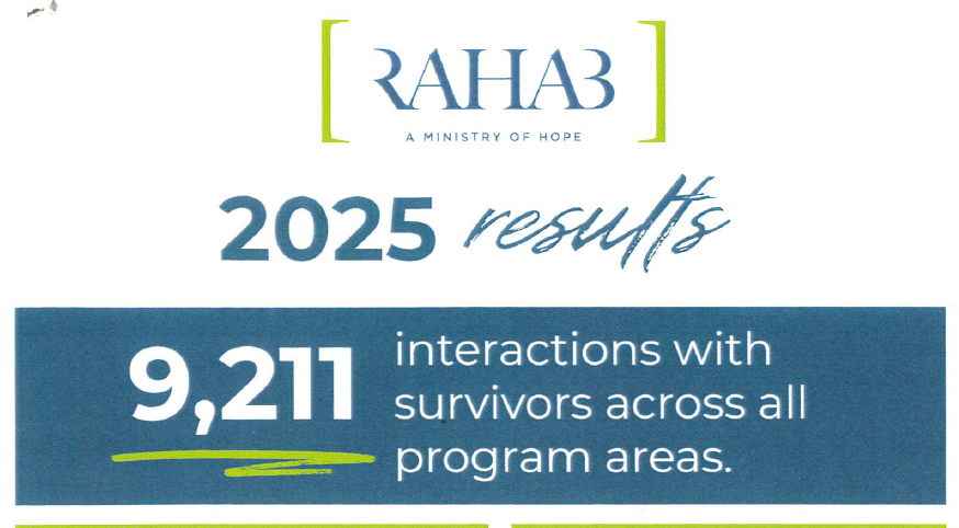 In this newsletter, RAHAB Ministries shares the impact made in 2025. Here are a few stats, but click the link to read the full newsletter!
